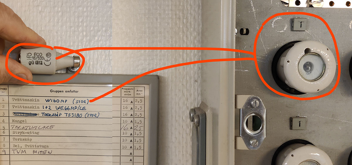 Om någon tvättmaskin inte fungerar kan det vara en bra idé att kolla säkringen. Det finns nya säkringar på säkringsskåpen.